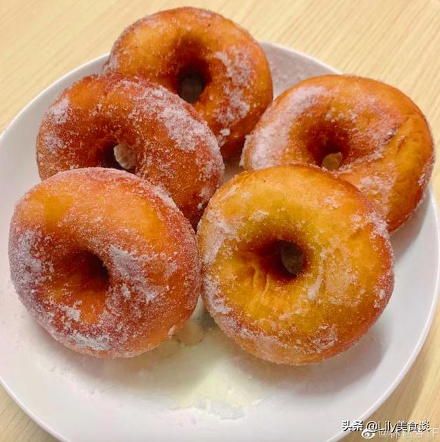 甜甜圈也是我的最爱呀,这个卖相看着就很好吃,外表酥脆裹上糖霜甜甜的,里面松软好吃,下午来上一块非常满足哦,不过热量也是相当高哦,减肥中的小伙伴有点望尘莫及了。