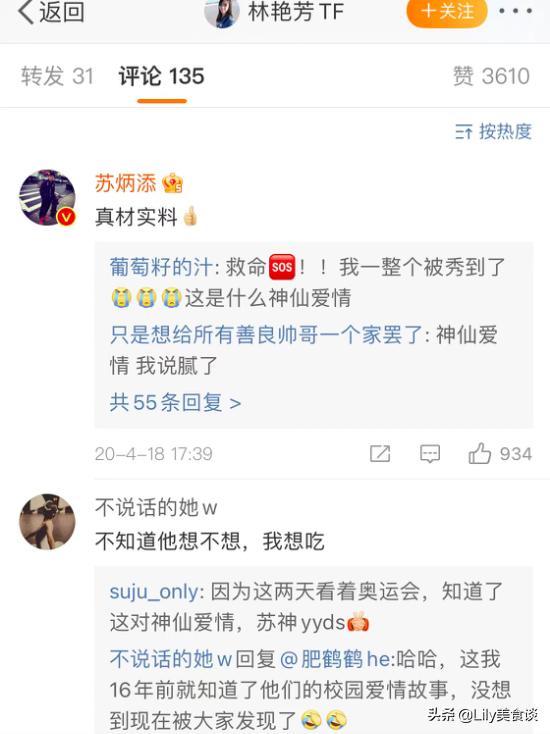 苏炳添还甜蜜地回应到:“真材实料”,网友纷纷表示被秀到了,这是什么神仙爱情,还有网友留言表示:“16年前就知道了他们的校园爱情故事,没想到现在被大家发现了”,真的是太让人羡慕了,狗粮吃一波~