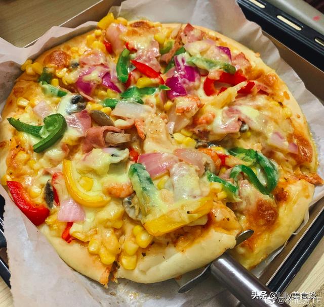 披萨是很多人的最爱,想要好吃除了披萨饼皮要做好之外,上面的配料也是要足吃着才过瘾呢,自己做尽管放,芝士多一些吃着更香哦,饼皮可以买现成的也可以自己做,然后铺上自己喜欢的配菜,玉米粒、彩椒圈、培根,最后撒上厚厚的马苏里拉奶酪烘烤即可,出炉香喷喷的,拉丝又好吃。