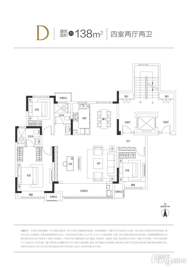 128平方,四室两厅两卫,户型方正,布局合理,公摊底!双开间大阳台!
