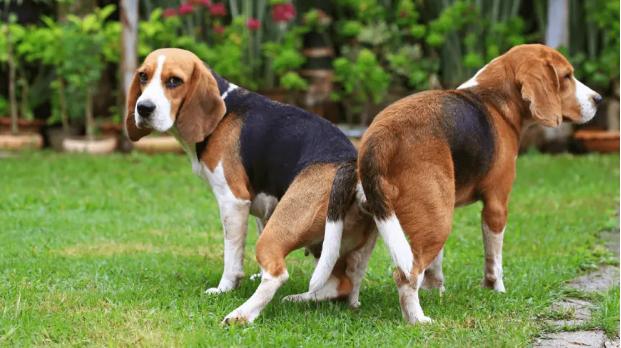 狗狗屁股对屁股,意味着交配快要结束。