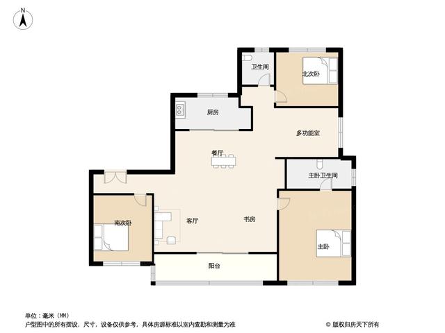 各个空间户型方正,方便室内家具布置;整个空间全明通透,采光良好,同时利于居住空间通风;居室布局合理,通风良好,动静分离,兼顾到了卧室和卫生间的私密性;客厅、卧室、卫生间和厨房等主要功能间的尺寸以及比例适中,有利于采光和通风,居住起来舒适、方便;公摊高于15%且低于25%,符合住宅公摊正常范围。