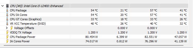 酷睿i5 12400的默认TDP仅为65W,所以对于主流的B660甚至是H610主板来说都不会有什么压力。测试时使用的华硕TUF GAMING B660M-PLUS WIFI D4重炮手主板在开启APE3.0功能解锁功耗上限为240W后,在R23的多核循环考机测试中,酷睿i5 12400可以维持在80W~85W的性能释放,此时使用240水冷的温度仅为54℃(室温24℃),相当凉快。相比第11代酷睿的高温来说,酷睿i5 12400的这个温度表现,玩家使用主流百元级风冷即可轻松解决散热问题,无需再像第11代酷睿处理器那样担心温度问题。