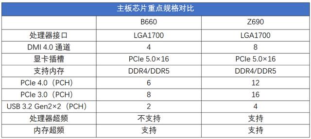 B系列芯片组一直以来都是面向主流和甜品用户的芯片组,相比旗舰级的Z系列芯片组缩减了超频功能和一些扩展通道。作为第12代酷睿处理器的座驾,B660芯片组相比旗舰级的Z690主板去掉了处理器超频功能,不过内存超频在这一代依旧得到了保留。玩家们比较关心的PCIe5.0和DDR5内存支持也得到了保留,当然具体支持情况还要看主板厂商的取舍了。和主板关系更大的PCH通道方面,B660正好能够提供相对Z690减半的规格,B660可以提供6个PCIe4.0通道和8个PCIe3.0通道,并支持2个USB 3.2 Gen2×2。由于第12代酷睿处理器能够提供PCIe5.0×16和PCIe4.0×4的通道,所以B660主板配合第12代酷睿处理器能够提供给玩家比上代更多或更灵活的M.2存储扩展。总的来说,B660芯片组的规格非常实用,对于超频无感的主流玩家来说,也能提供更高的性价比表现。