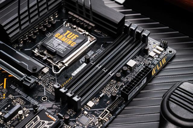 本次测评选用了华硕TUF GAMING B660M-PLUS WIFI D4主板,该主板沿用了TUF GAMING系列的家族化设计风格,并在本代进一步细化,主板侧边的RGB边缘灯效换为了更具识别度的“TUF”字样,更加符合年轻潮玩玩家的喜好。