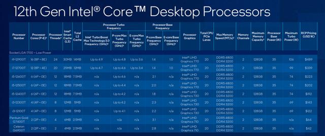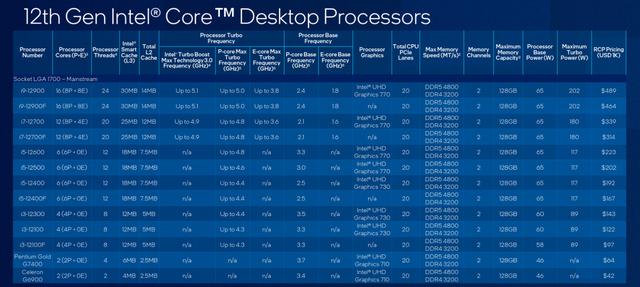在1月5日的CES2022上,Intel补完了第12代酷睿桌面版处理器家族,从旗舰级的酷睿i9到入门级的赛扬,共计22款,加上首发的6款K/KF系列处理器,Intel第12代酷睿处理器家族已经达到了28款。