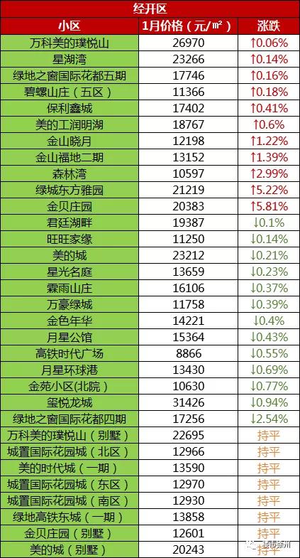 经开区统计的32个小区中,有11个小区价格上涨了,有13个小区价格下跌,还有8个小区价格维持不变。