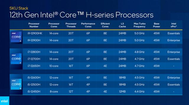 第12代酷睿移动平台大部队登场,全面覆盖各级定位