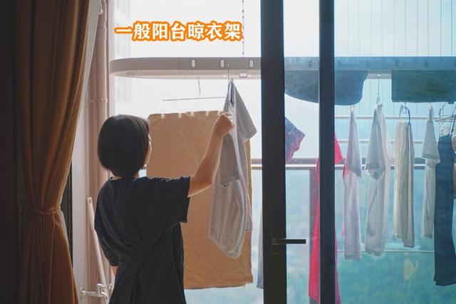 因为这种衣架有一个共同的特点,就是不用的时候隐藏的很好,不会影响阳台的美观。使用时打开,实用性也很足。