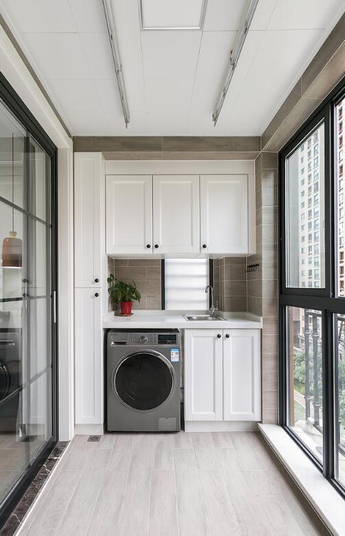 对于阳台来说,通常一边是洗衣柜,另一边是阳台柜,这也是很常见的设计,实用性很好。