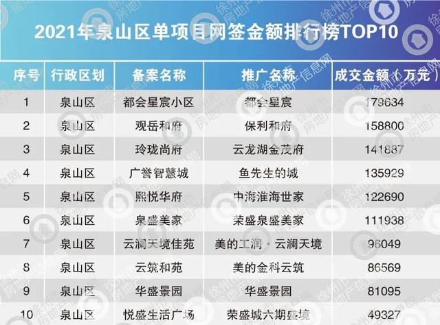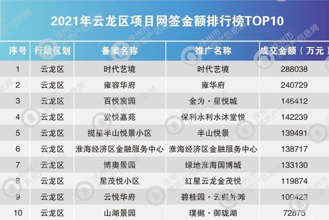 3、榜单统计区域为徐州市主城区(鼓楼区、泉山区、云龙区、开发区、铜山区、高新区、贾汪区);