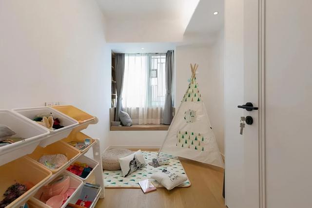 另一间客卧原本打算塌米,但在充分考虑成本问题后放弃了这个计划。在这个阶段,屋主已经把它布局变成了一个供婴儿玩耍的娱乐设备室。如果中后期有其他要求,里面的合理布局可以调整。