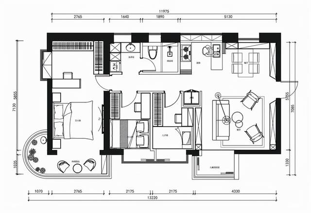 整套房建筑面积约75㎡,小三居户型,户型方形。但是缺点也是不言而喻,就是每个房间都不大,家里还有个卫生间。根据设计师和业主的设定,结合户型现状,做出如下更新改造设计方案:
