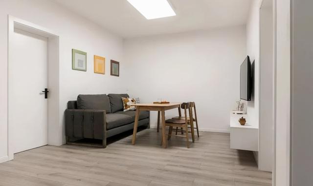考虑到客厅和餐厅都很小,设计师可以通过两个空间的结合来节省空间。餐桌两侧有沙发和餐椅,电视机正对面。平时业主可以在这里吃饭看电视,非常方便。