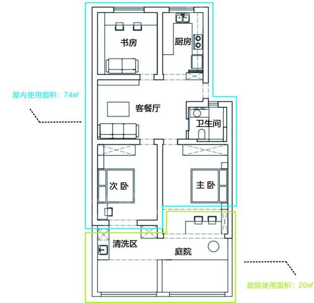 本次分享的案例是一套老房改造,室内面积74㎡还带一个20㎡的院子(十分向往有院子的家)。业主是一对90后的夫妻,他们对生活保持着热诚,所以设计师有勇气将自己新的想法融入这个“家”里!