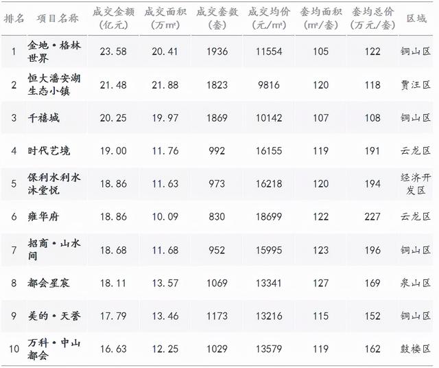 根据中指控股研究院数据,去年徐州卖得好的楼盘有哪些?