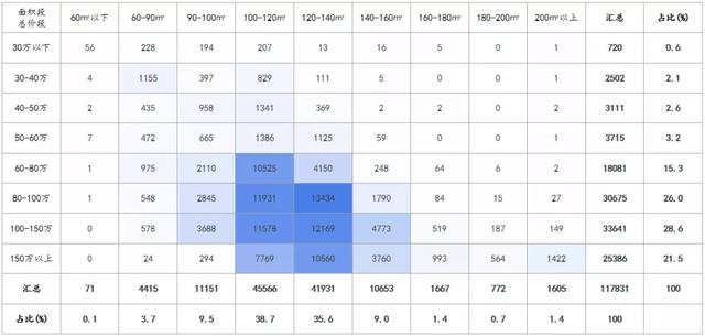 其次是80-100万元总价段,占比为26.0%。第三为150万元以上,占比21.5%。