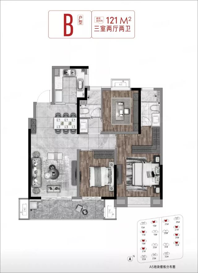 该项目采用的是大面积落地窗+铝板+真石漆构成的外立面,社区内部有的楼间距高达109米。装修包中,