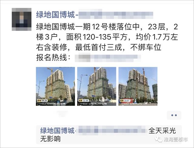 在项目拿到销许的前几日,绿地淮海国博城的置业顾问已开始发圈推广。