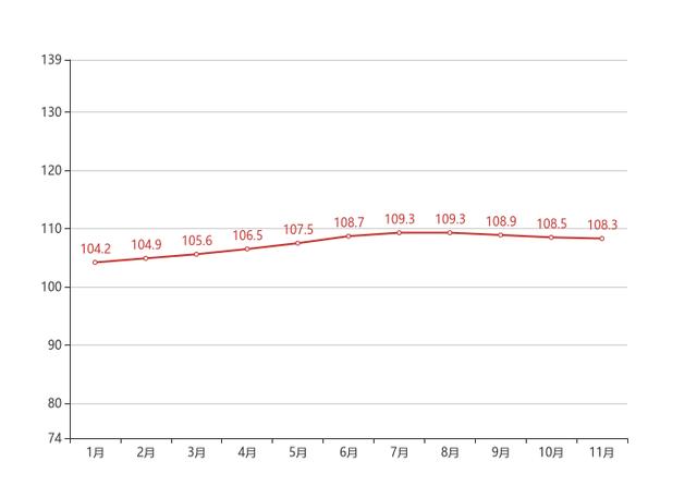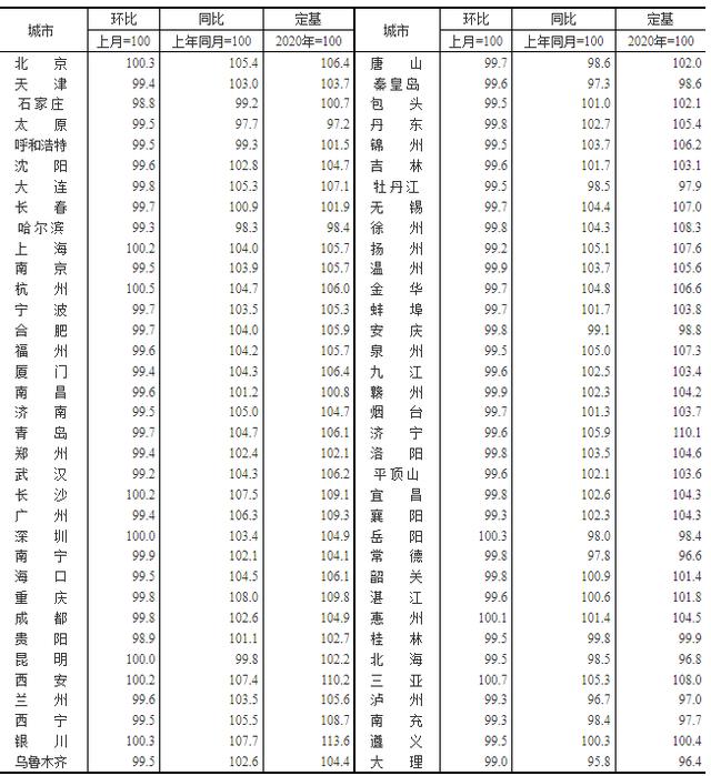 图1 2021年11月70个大中城市新建商品住宅销售价格指数