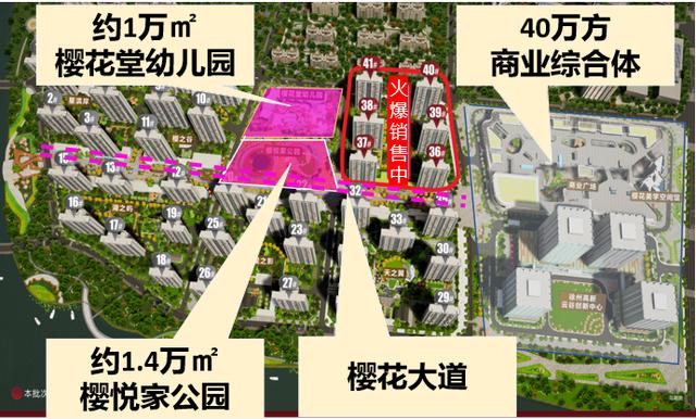 约700m樱花大道、约1.4万㎡“樱悦家”公园、约1万㎡“樱花堂”幼儿园