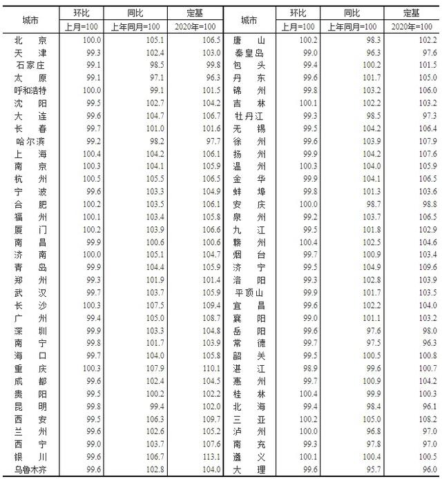 图1 2021年12月70个大中城市新建商品住宅销售价格指数