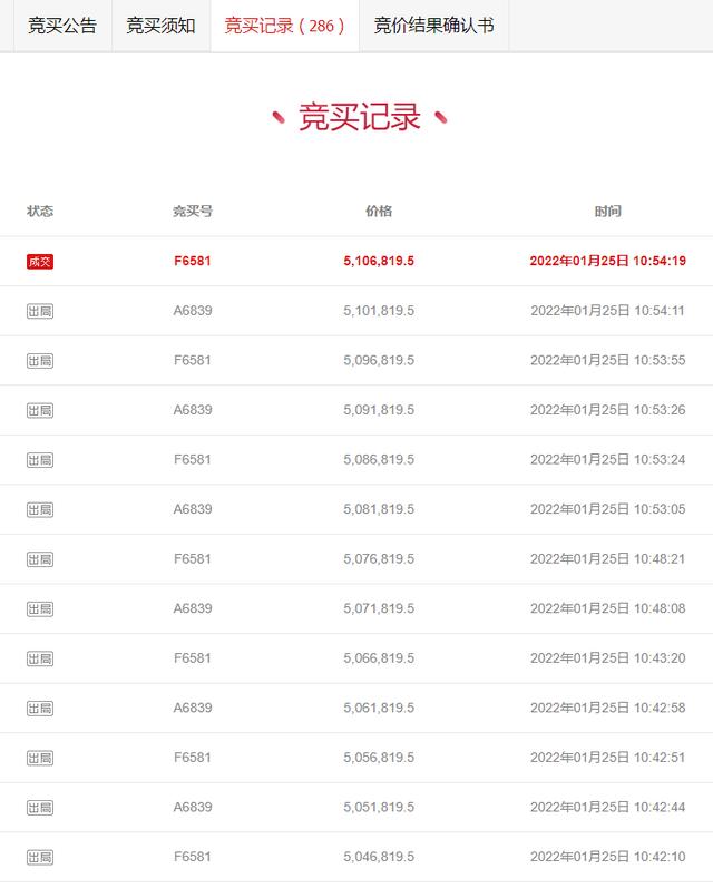 本套房产的本次公开出售,共吸引来5546人前来围观,其中有150人比较关注设置了提醒,最后有9位购房者选择了报名参与竞价并缴纳了相应的保证金。在竞价周期内,这9位购房者出价多达286轮,最终以510万元的总价成交,成交单价为1.39万元/㎡。