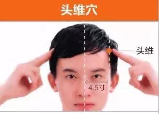 在头侧部,额角发际上0.5寸,头正中线旁4.5寸。