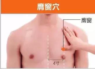 在胸部,当第4肋间隙,乳头中央,距前正中线4寸。