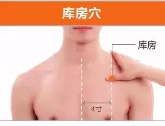 在胸部,锁骨中点下缘,距前正中线4寸。