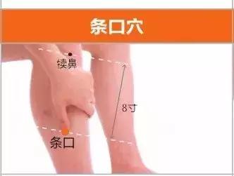 在小腿前外侧,外踝尖上8寸,条口外,距胫骨前缘2横指(中指)。