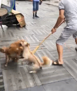 3、当狗狗没有被牵引绳控制,那它就会因为抢食等原因,惹到其他狗,从而出现打架的行为,这时你家狗也可能因此受伤甚至被活活咬死。