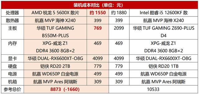 装机总价对比,锐龙5 5600X赢得毫无悬念