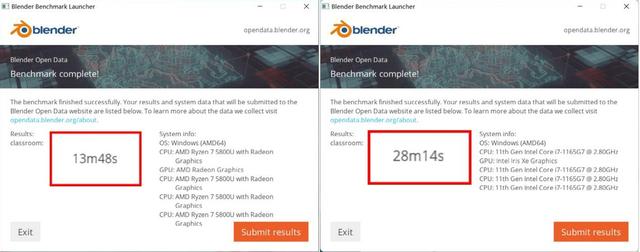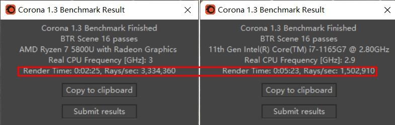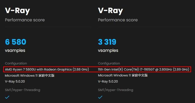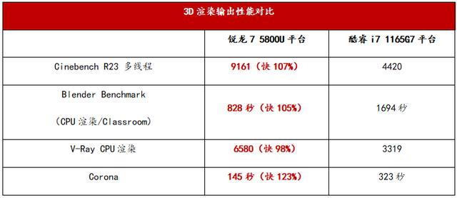 从前面的测试可以看到,如果用户要使用商务轻薄本来完成一些轻量级3D渲染工作的话,锐龙7 5800U明显是强得多的选择。
