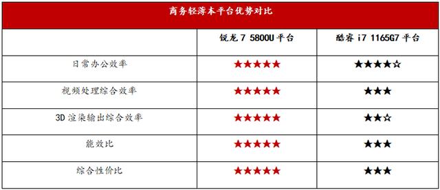 总结:性能全面效率更高,锐龙7 5800U商务本更值得选择