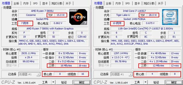 锐龙7 5800U相对酷睿i7 1167G7无论是制造工艺、功耗控制、三级缓存容量、核心/线程数量都更有优势