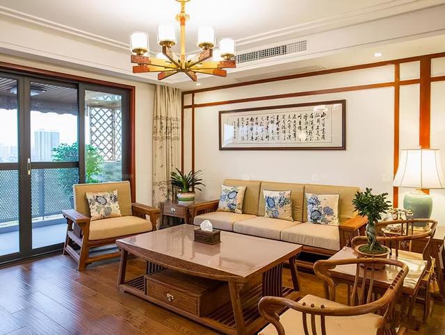 尤其是墙上的红木线条,整个客厅充满了层次感。