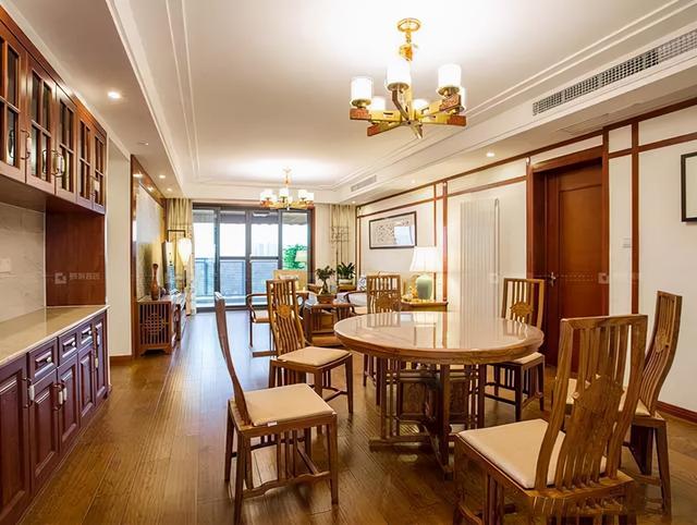 在开放式的格局中,客餐厅开辟了免费的步行路线,普店的木垫和各种中式元素的点缀,给人一种春风的空间感。