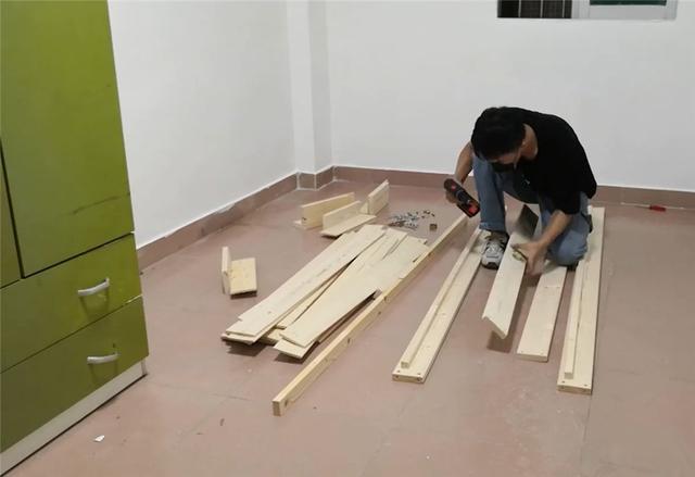 至于床柜之类的家具,为了节省预算,这位小哥哥买的几乎都是二手或者散件的木头,自己组装翻新。