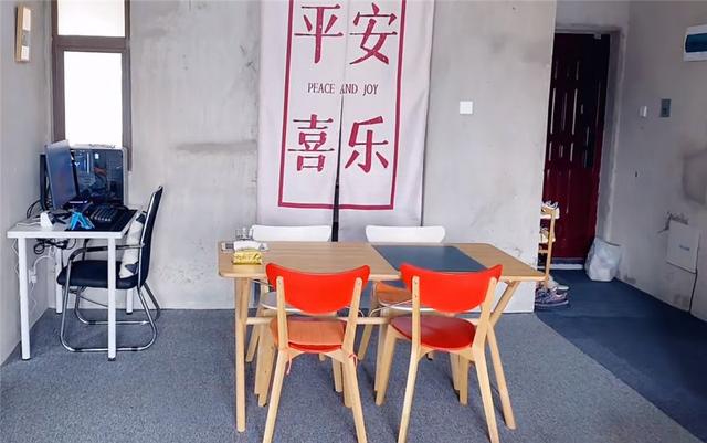 进入客餐厅,眼前看到的家具基本都在100元左右,四人桌摆放在中央位置,满足两人日常用餐需求。