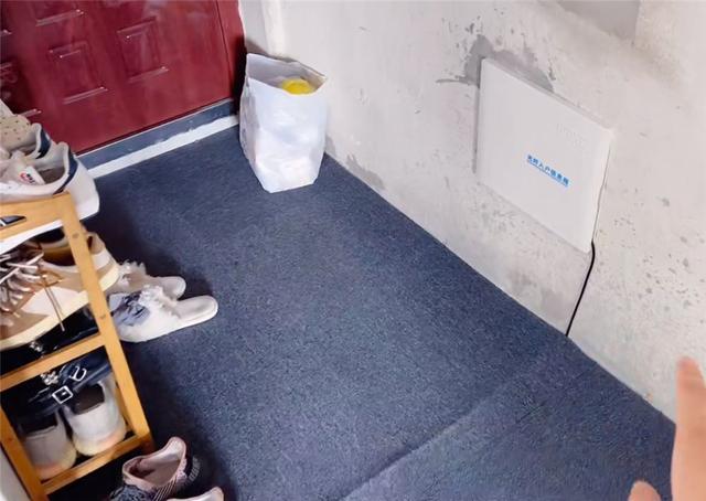 屋主和女友在这里铺了一块相对便宜的地毯,打造了一个小的降尘区,旁边用了一个简单的开放式鞋架存放鞋子,依然整洁干净。