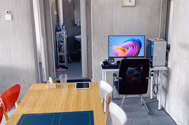 利用餐桌角落多余的空间,两人就在这里放下了一台电脑,作为工作区和游戏区。晚上下班后,男主人经常在这里玩游戏放松。