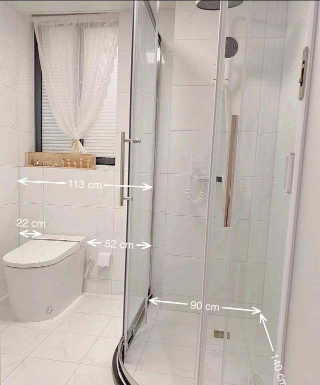 卫生间以白色为主,空间干净明亮。除了浴室柜,还安装了镜柜和壁龛,用来存放洗漱用品和洗浴用品,保持空间整洁。淋浴区安装了弧形玻璃门,通透又节省空间,人在里面活动更灵活。
