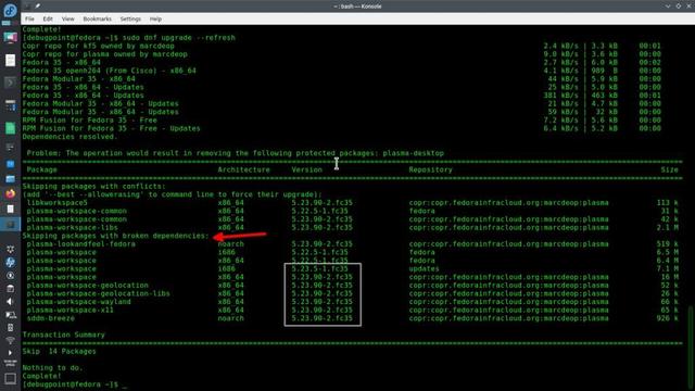 sudo dnf copr enable marcdeop/plasmasudo dnf copr enable marcdeop/kf5sudo dnf upgrade --refresh