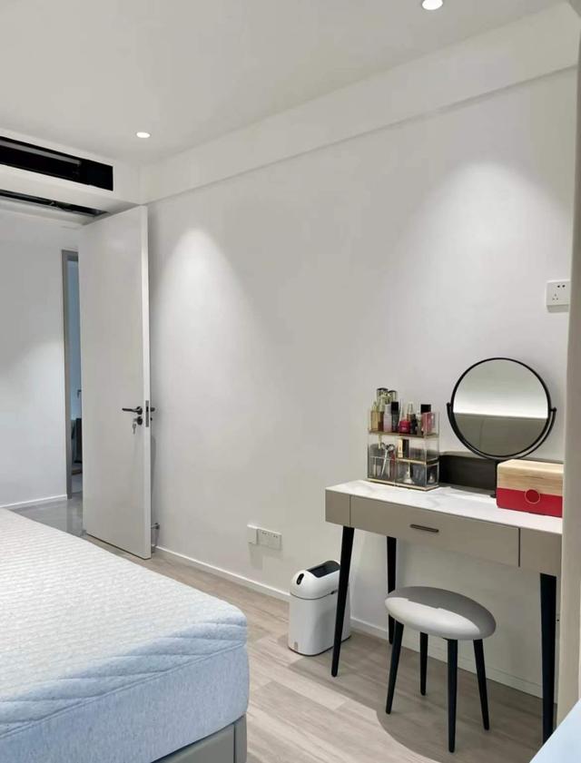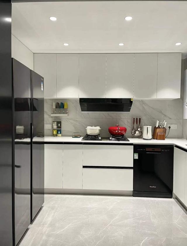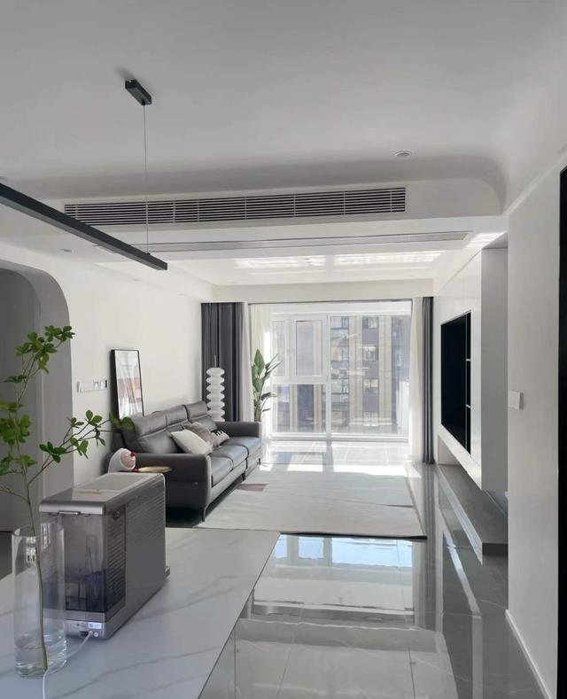 全屋大白墙,清爽百搭,明亮耐用。客餐厅、阳台、厨房均采用宝格丽灰色亮面瓷砖铺装,无垫脚石。整个房子在视觉上更加连贯流畅,呈现出很大的亮度,不显脏,容易打理。