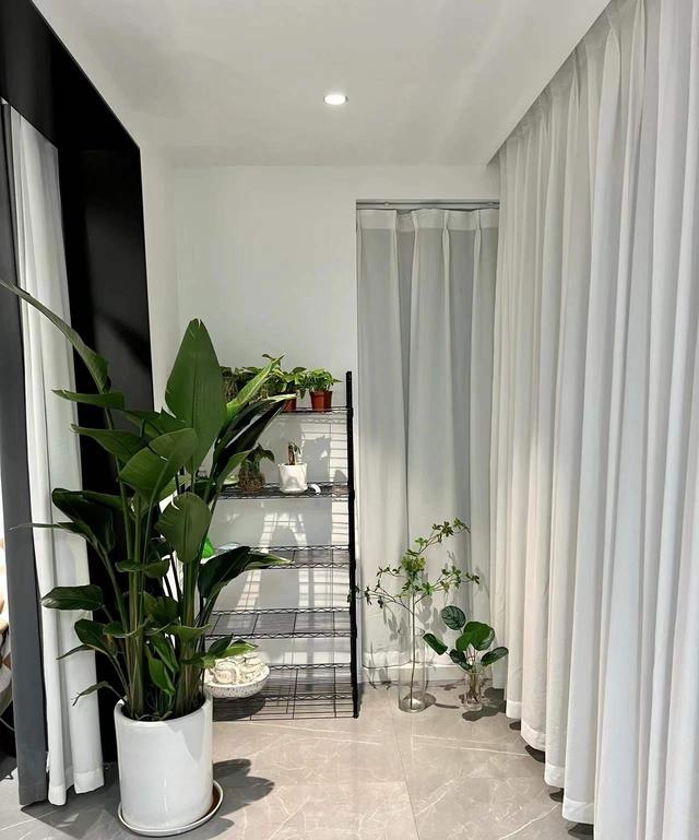阳台左侧设计成绿色种植区,用搁板放置绿色植物,让家充满生机和活力,营造健康安全的家居环境。