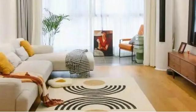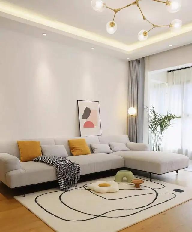 l型转角沙发从舒适出发,提供舒适大方的家居体验感。铺上毛茸茸的地毯。地毯柔软的触感和温暖的体验让整个人身心都感到放松。