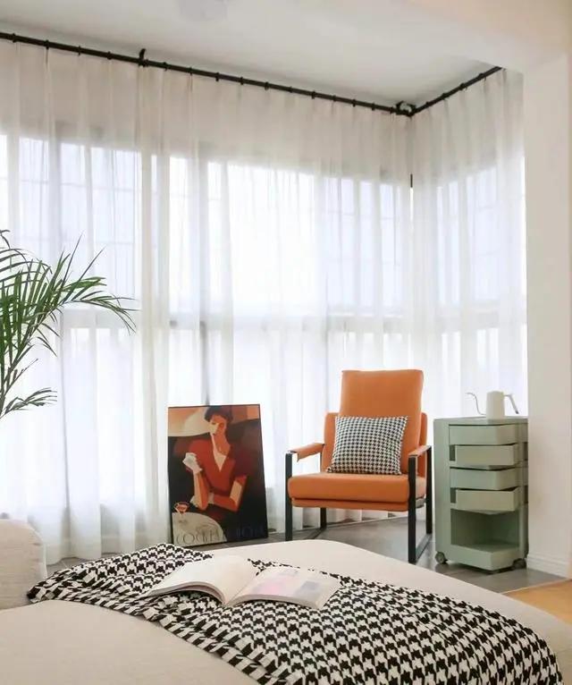 全屋没有沙发墙,也没有电视背景墙。阳台打开后,没有门套。门洞两侧直接刷乳胶漆,然后安装一层白纱。通常,白纱会覆盖门框。