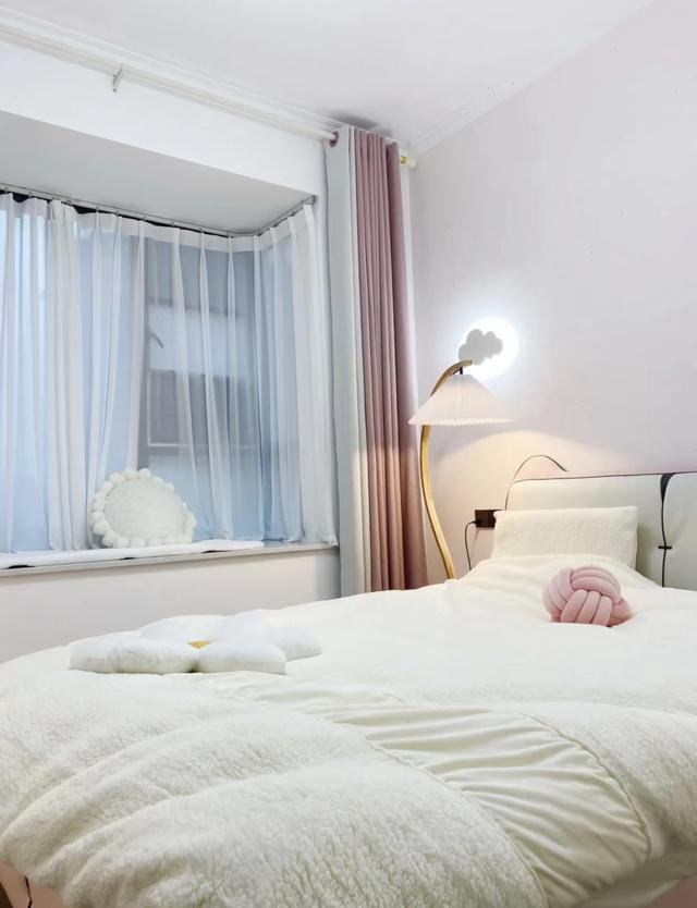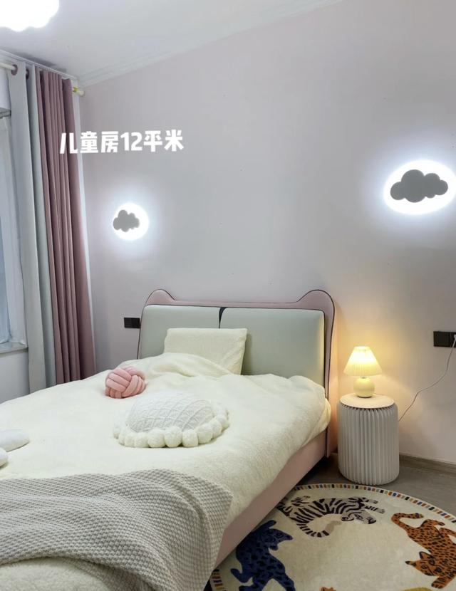 儿童房的装修说明女主人的设计很用心。在乳胶漆的色调上,没有直接画大白墙,也没有选择现在的网红色调。而是让油漆工调一个浅粉色。