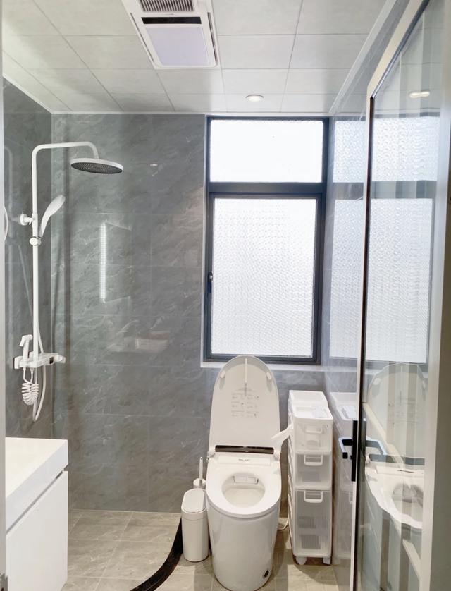 卫生间也采用铝扣板集成吊顶,实用又经济。在墙砖的选择上,我们不是用30的小瓷砖,而是30乘60的长方形瓷砖。这种瓷砖经过精美的缝制,比前者漂亮多了。